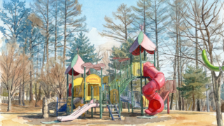 長野県御代田町の雪窓公園を子連れ目線で正直レポ!2025年にリニューアルしたインクルーシブ遊具、広い芝生、お花見、冬の花火大会まで。軽井沢から車で約20分、駐車場無料で楽しめます。